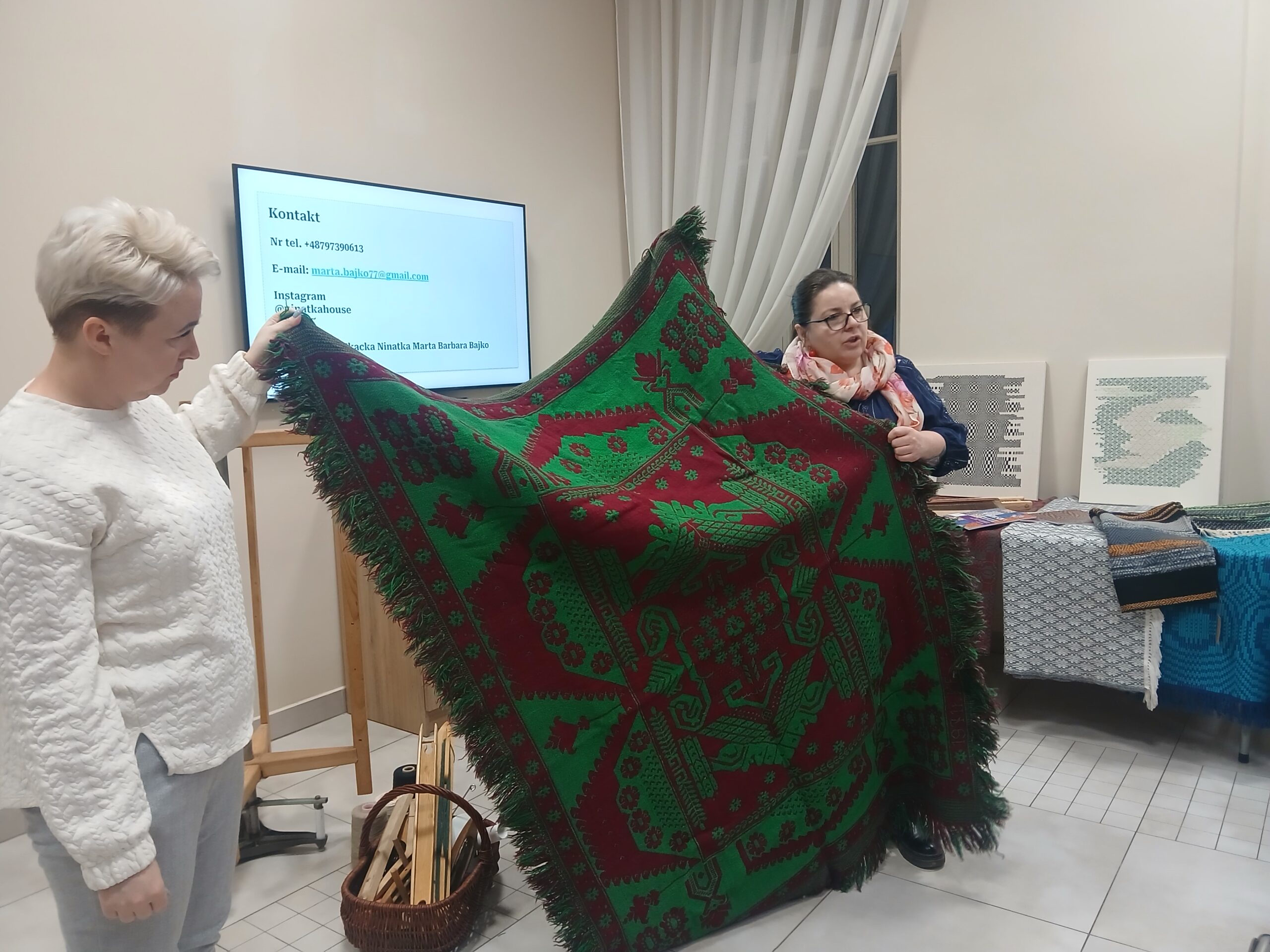Na podłożu tradycyjnych podstawowych technik tkackich uczyliśmy się jak przygotować samodzielnie osnowę i krosno do pracy oraz jak prowadzić wątek w tkaninie, aby stworzyć przepiękne, wyjątkowe i osobiste prace.  Zastosowaliśmy większość metod tkania chodników występujących w określonych gminach co było swoistym międzypokoleniowym transferem tradycji do współczesnych projektów.